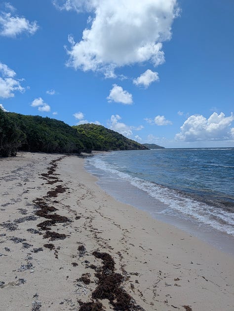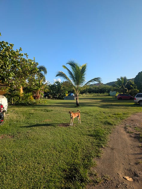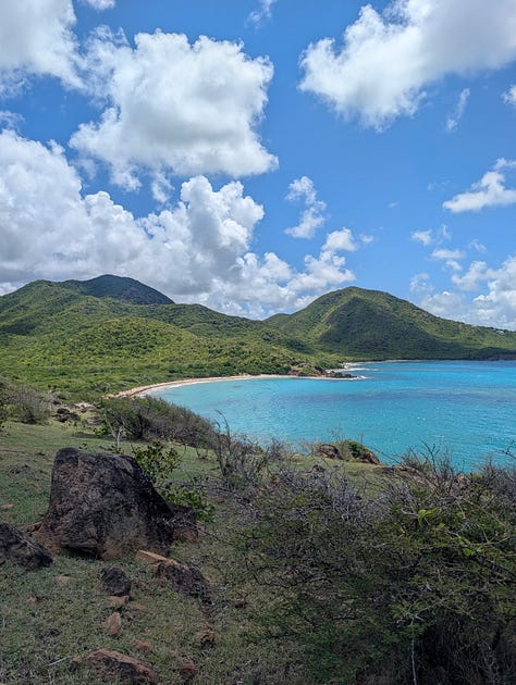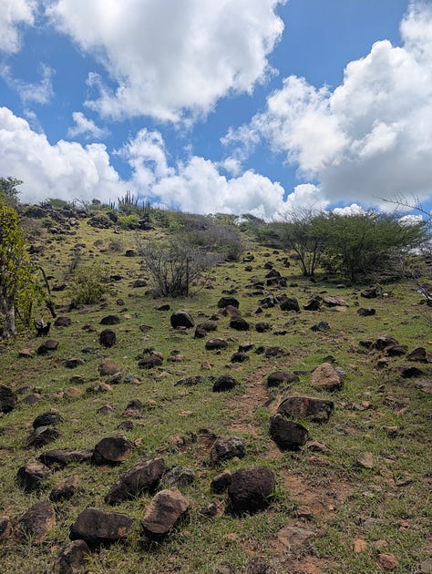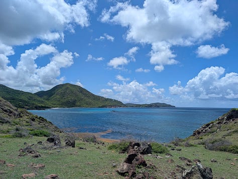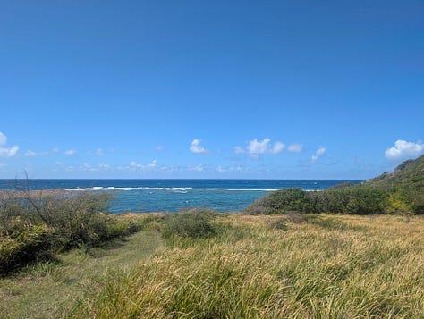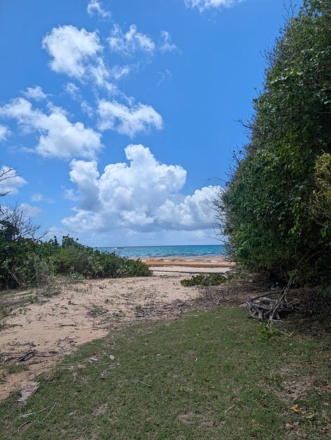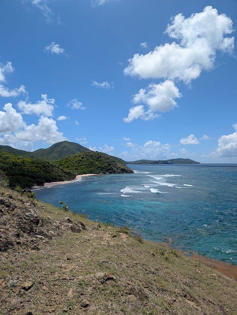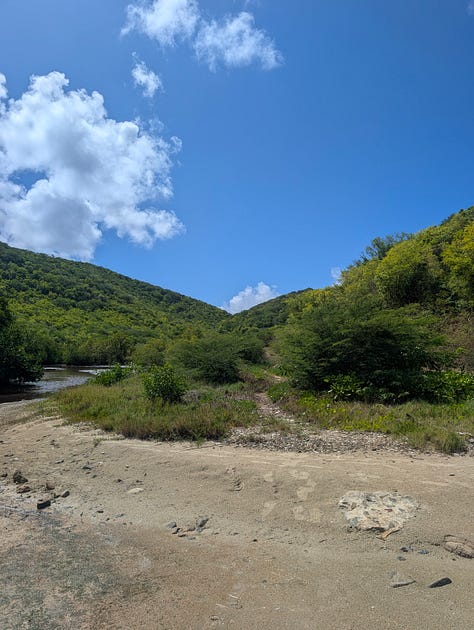 The hike was beautiful! Started the day with a quick hello to Runt and picked up some salfish and dumplings from Linda’s in Jolly Harbour. Once you get to the end of the Carlisle Bay beach, there is a turn-off by a small body of water that leads you into the trail system. An hour and forty minutes later (I took it pretty slow), I was at the “campsite” at Rendezvous!