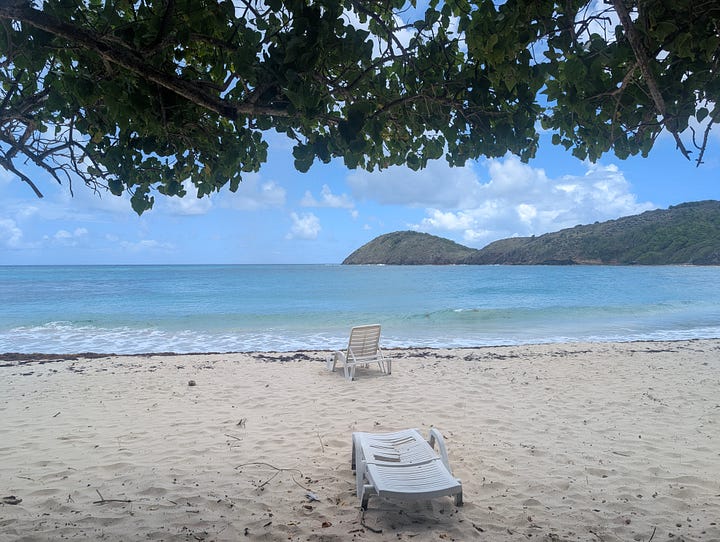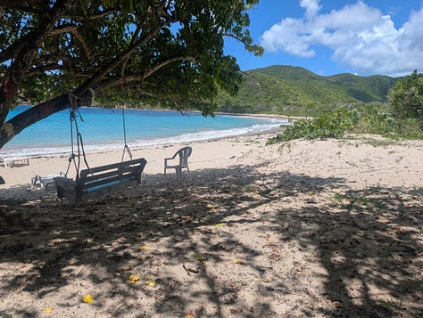 It generally takes between 60 and 90 minutes to get from the parking lot just before the Carlisle Bay hotel (at the beach) to the start of the Rendezvous Bay. There are a few hills, but there is a lot of coverage from vegetation, which is great for keeping somewhat cool on the hike. I got drenched in sweat either way, but that is what the beach is for post-hike! There seemed to have been a wedding at Rendezvous recently, so there were lots of additional chairs to sit on by the beach, and there was even a beach swing, which was really cute and enjoyable to sit on and just enjoy the view.
