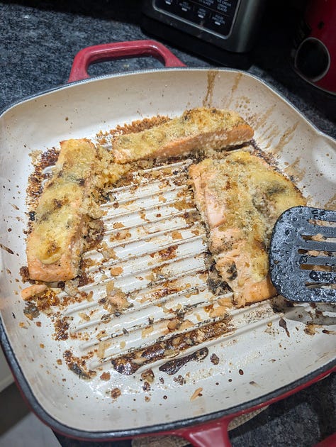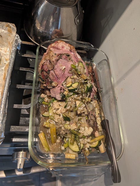 Nana asked me to cook a leg of lamb for her this week, so that was probably my most exciting meal, but there were a few other fun ones, like some panko crusted salmon and some yummy veggies.
