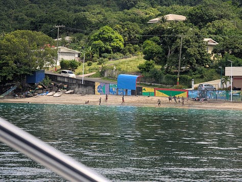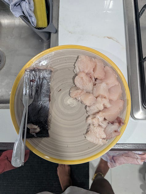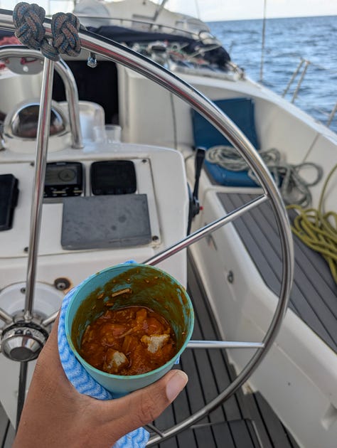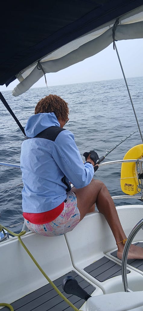 I love raw fish, especially when I have had the opportunity to catch it myself. Tuna is still my favourite! It was wild, though, because just as the fish took the lure, a huge squal came in and we had to manage the sails while also managing the fish. We ended up bringing the fish on board and managing the sails well, though! The rain was coming down so hard that it was stinging my eyes, even though I had glasses on! By far the biggest storm I have sailed through, and we sailed through quite a few storms on this trip.