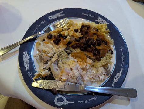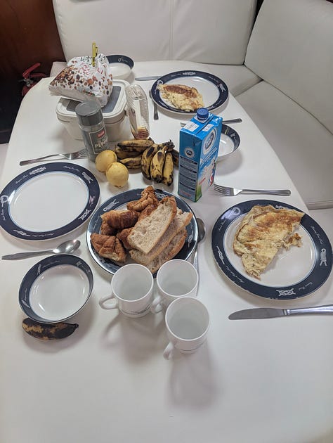 First, I’ll show you all the yummies that I got to eat on the trip! I ate way too much over the past few weeks. I am very glad to be back home and eating my soup every day. I feel better eating a vegan diet again, but it was nice to be eating yogurt, cheese, fish, and even chicken while out on the water. I am quite simple with my diet at home, but I don’t like being picky when others are preparing my meals.
