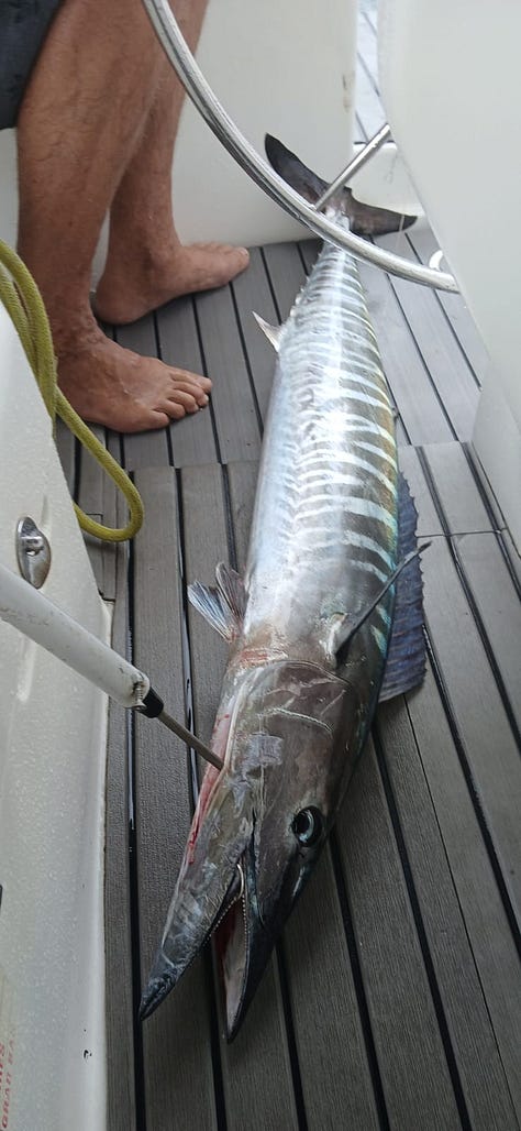 We caught a HUGE wahoo as well! It was delicious to eat as sashimi (raw), and it was yummy cooked in steaks and fish pie as well. I definitely ate well on the trip!