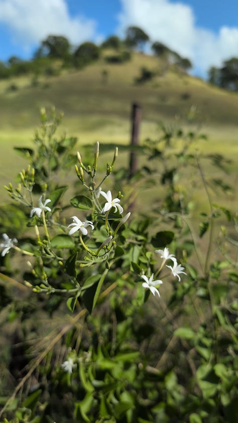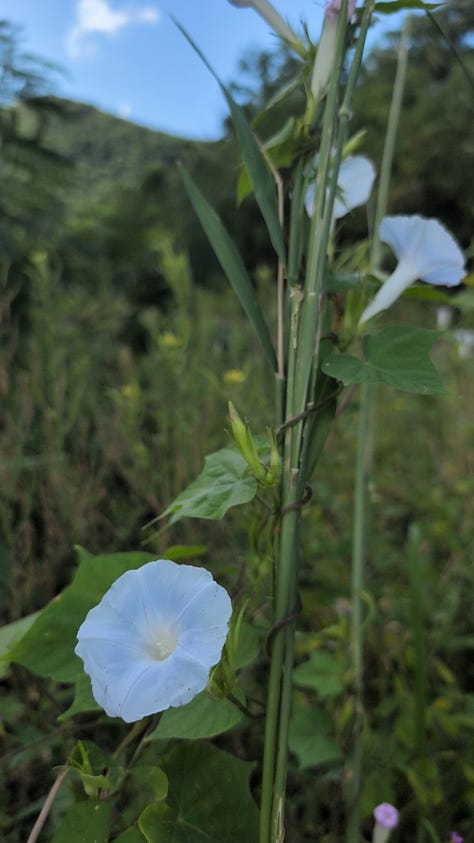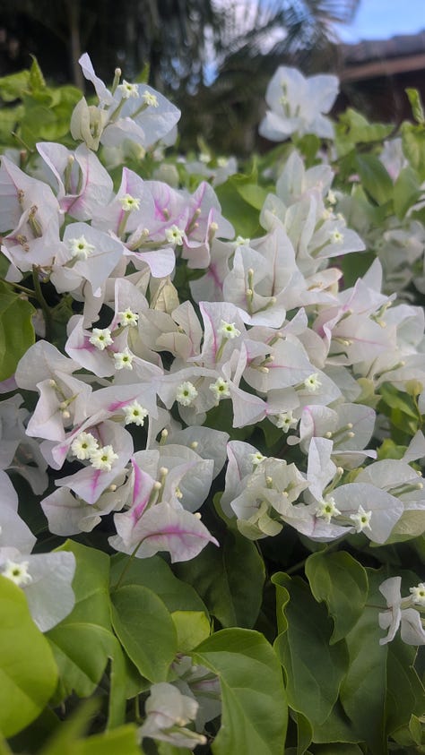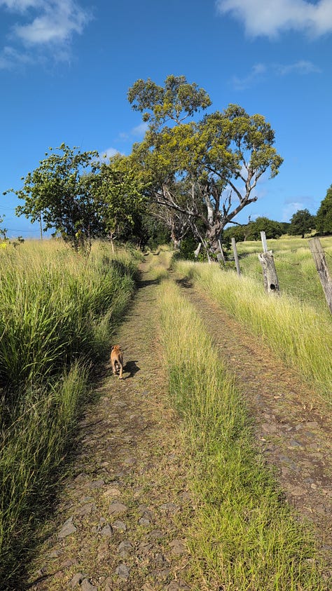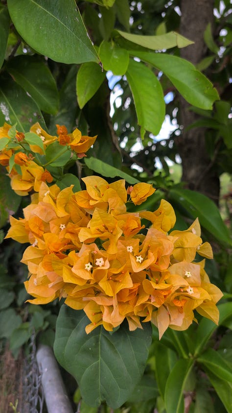 The walks usually take an hour or two, but by the end of them, I end up with a delicious bag of fruits! This time I got some mangoes, ackee, and sugar apples! There are also so many pretty flowers along the walk.