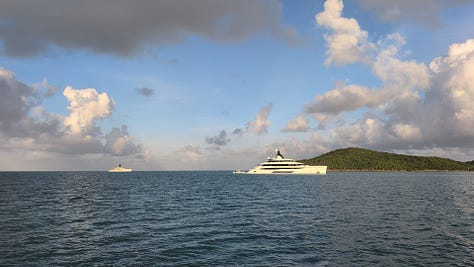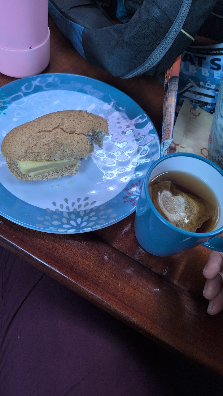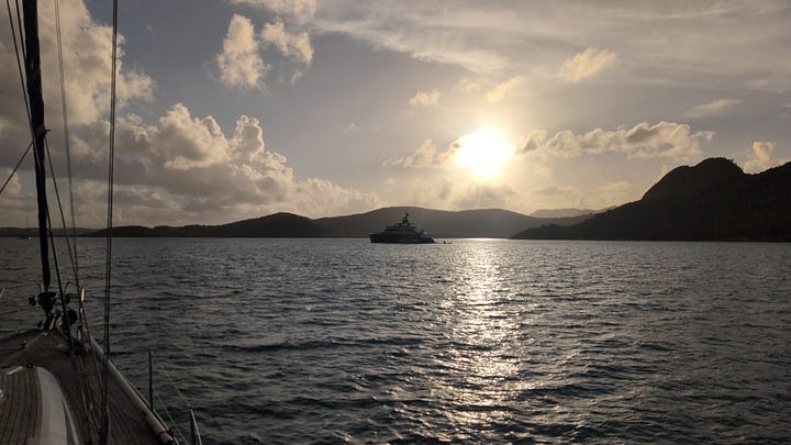 Some friends of mine took the Cruising Instructor course and passed! I was very excited for them! And last night we slept out in the bay. The saloon wasn’t the most comfortable, haha, but I survived! And this morning I had a couple of cups of tea and some bread and cheese for breakfast. I usually don’t eat breakfast these days, but I was cheating a lot this week, haha. The most sugar I have had in a long time as well… oops. There were 4 superyachts in the bay with us when we woke up, and we had a pretty good morning of sailing. Beautiful sailing weather all week!