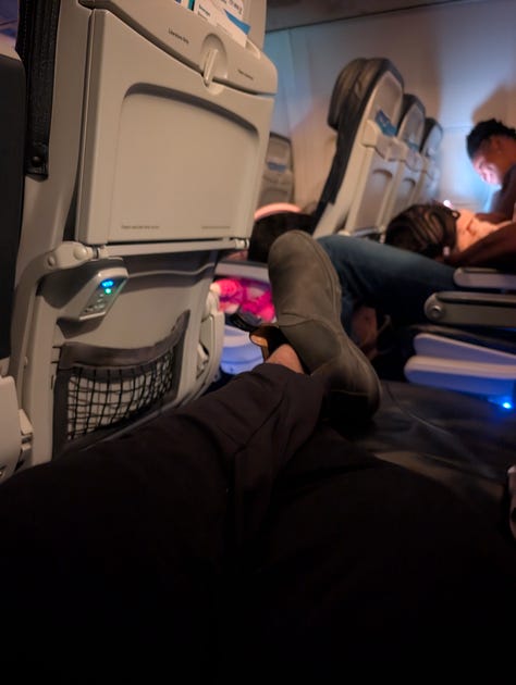 Christmas Eve, I was traveling. I went into work in the morning, to say hi to the coworkers and Alfie from Emily in Paris was there doing a Powerboat course! A co-worker drove me to the airport ππΎ, and the flight was pretty straightforward. I had a row to myself which was nice as well.