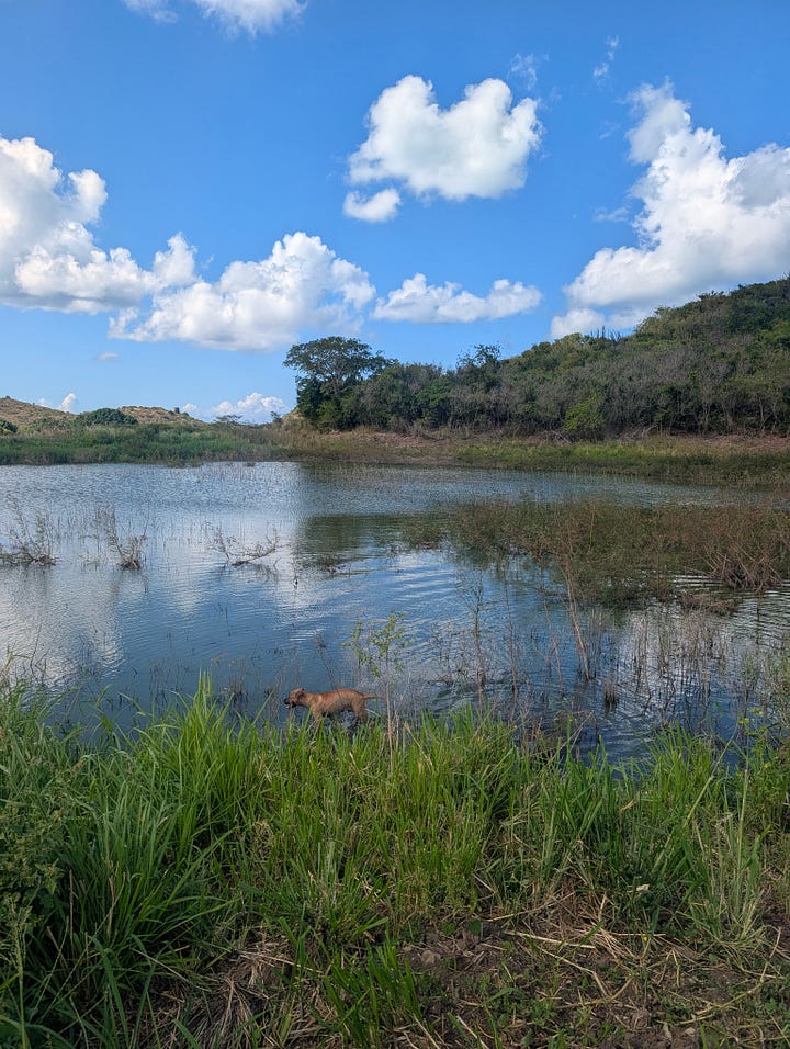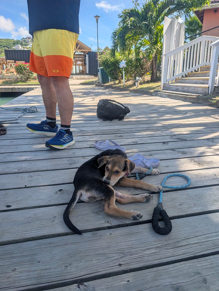 I got to get back to my walks with Luffy and Runty! Luffy is even now starting to splash around in the pond. The owners of the scuba school got a new puppy. Her name is Shadow. I hope she and Luffy get to play together one day. I got to sail for a day on Monday, and have been diving as well. Hopefully, I will have Divemaster and Yachmaster complete by the end of the spring!