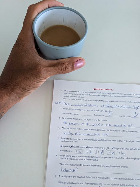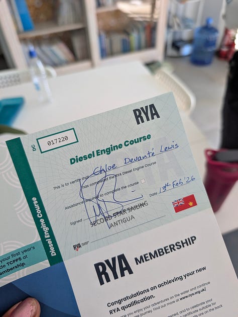 Happy Sunday, Aimery! I hope you have had a wonderful week. This was a pretty slow week for me, but it ended up busy for the weekend. I worked a charter on Thursday, took my diesel engine course on Friday, and raced in the Jolly Harbour Valentine’s Day Regatta on Saturday and Sunday.