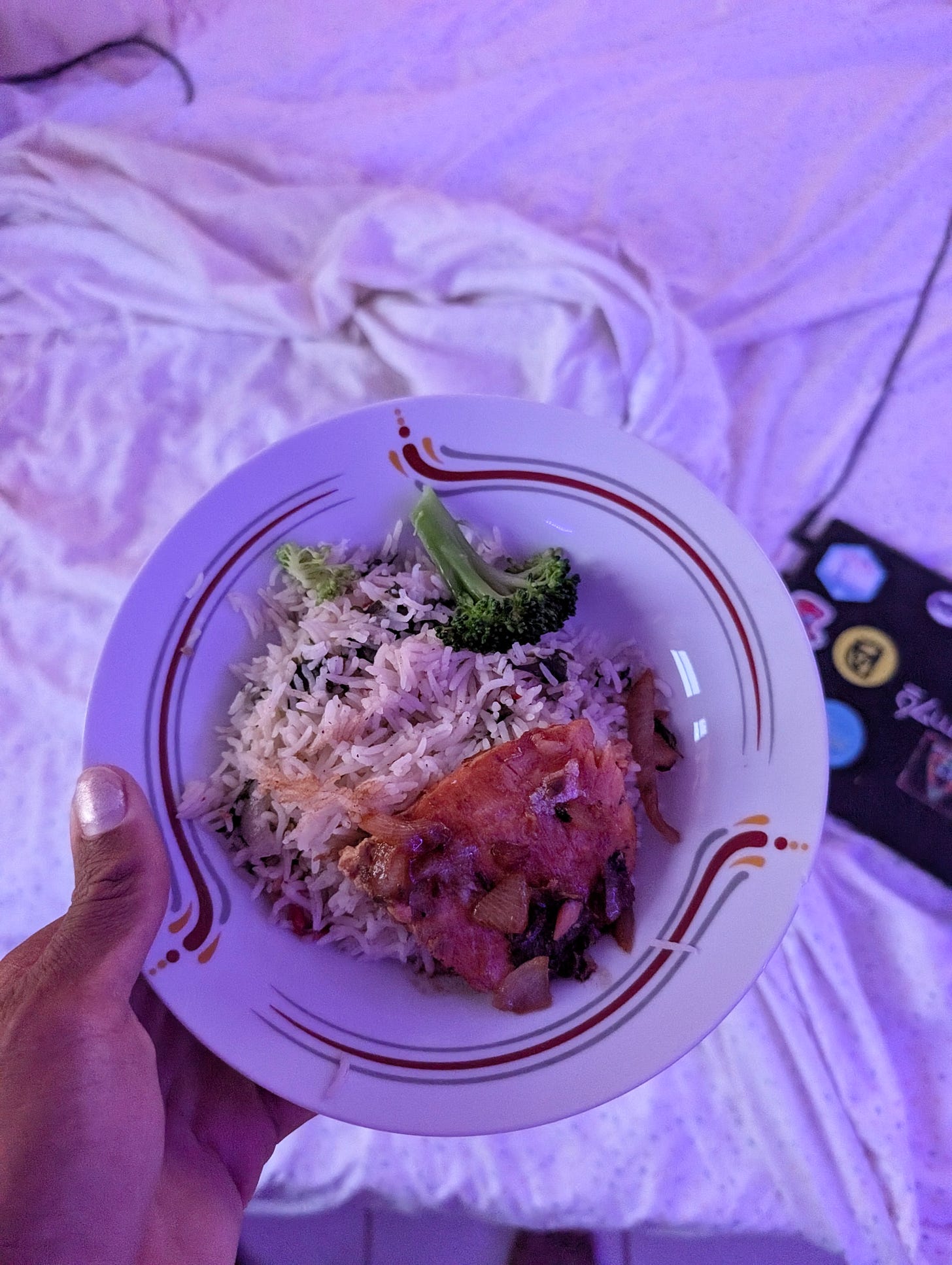 Oh, and also, my landlady brought me food a couple of times this week. I only got a pic of the one meal, but it was so delicious. I eat soup 3 meals a day at the moment, most days, but once I have a real kitchen again, I am very much looking forward to making a larger variety of meals. Soon, haha.