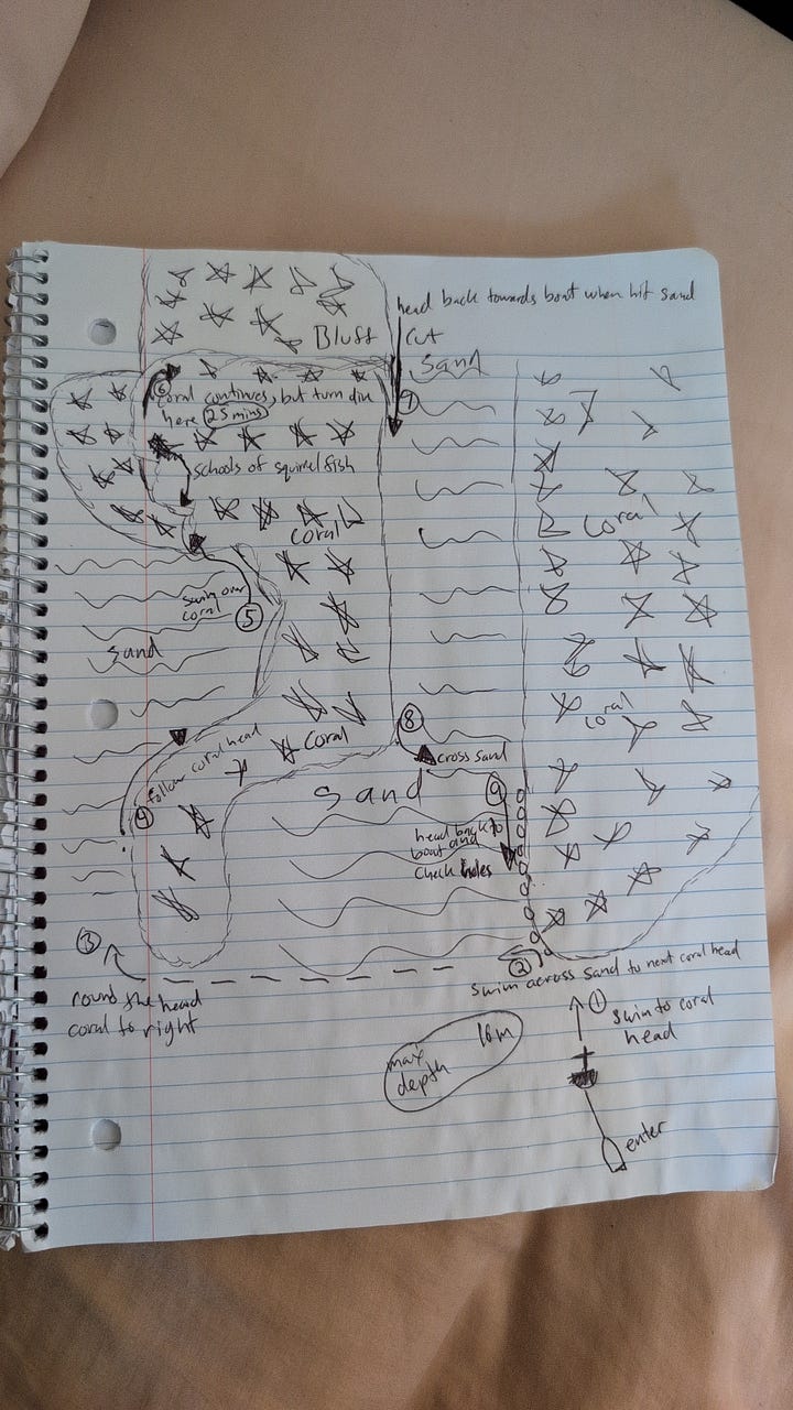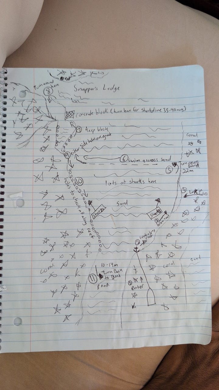 I have also been moving along in my divemaster course. I am leading multiple dives a week and have my favourite dives to lead. I even mapped out a couple of dive sites for the course.