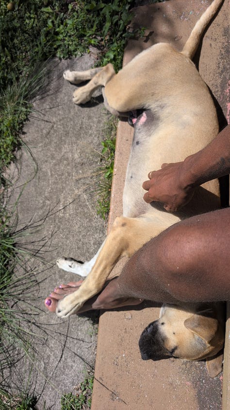 I also got to go for a long walk today! Luffy is doing so much better after being hurt a couple of weeks ago, and we all had a great time.
