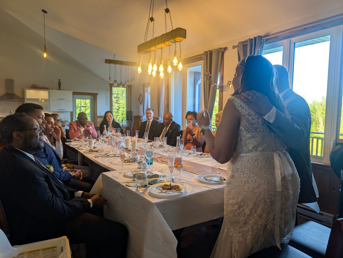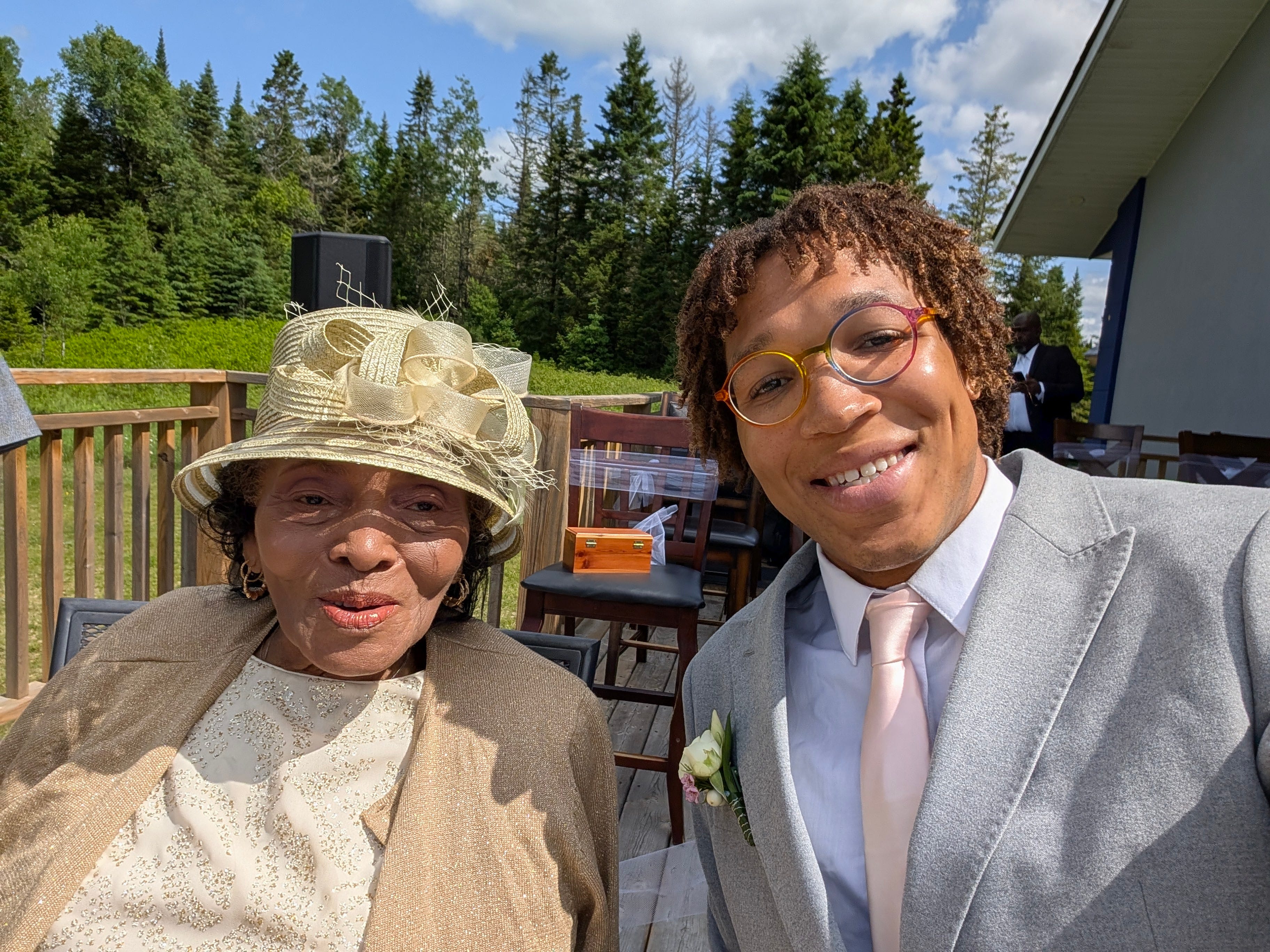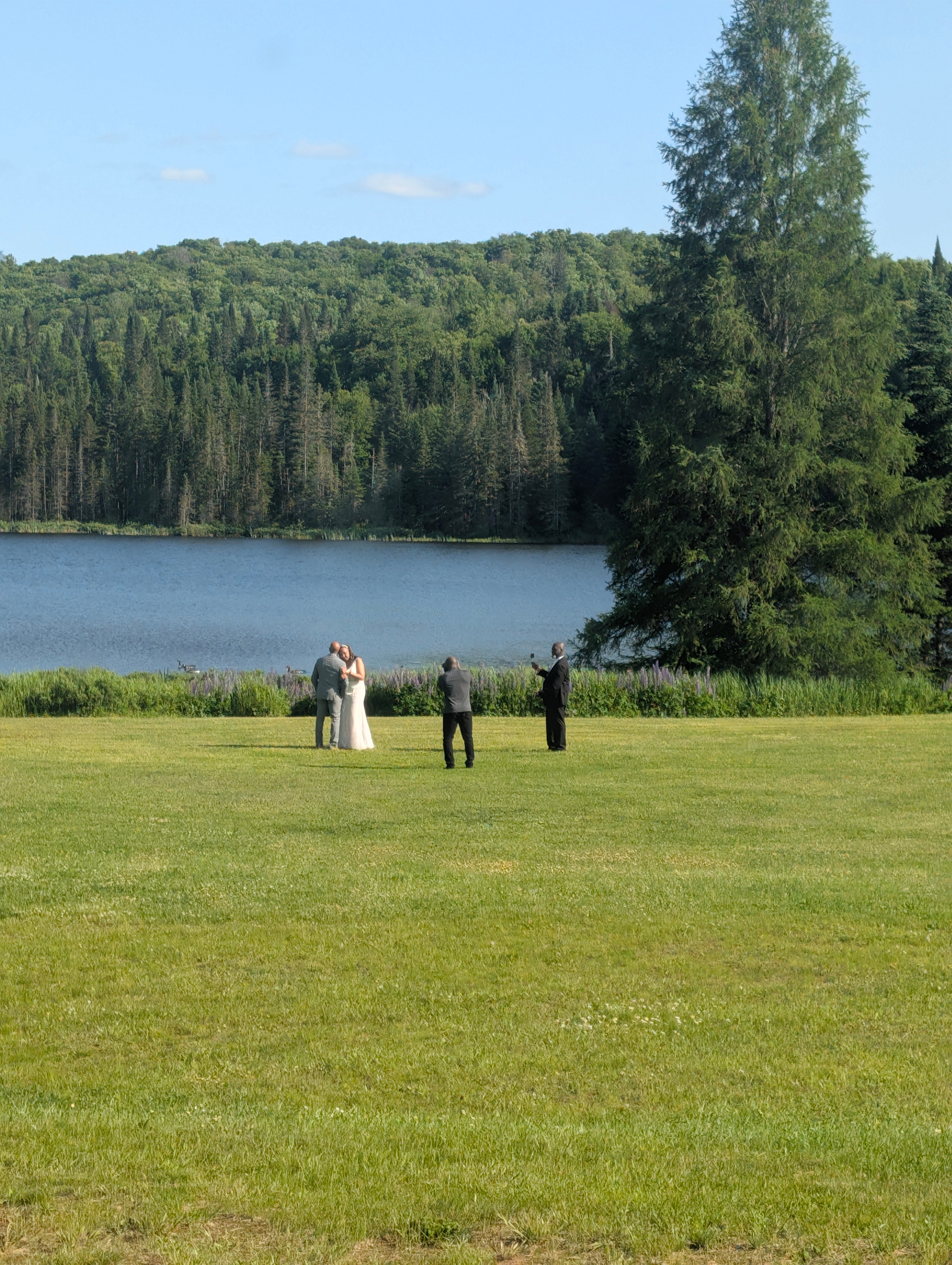 It was such a beautiful wedding! Angele Williams (your Nana) and Pierre T. are now married! We drove across Ontario and through a bit of Quebec to Mount Tremblant to a rental house that Nana booked for the occasion. It was a beautiful venue. There was enough space for all the guests to stay at the property, and the wedding was able to be hosted directly on the side deck!